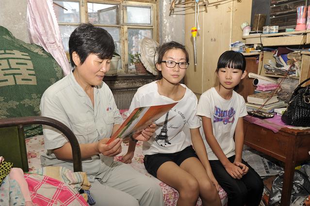 .集團黨委副書記孫淑君(左一)讀著孩子的錄取通知書。