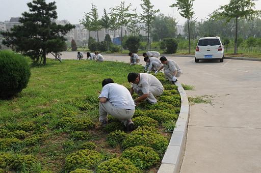 會后,一場黨員帶頭、員工共同參與的集體除草活動熱火朝天地開展起來。大家有的用手拔、用的用鐮刀割、有的用袋裝、用的用車推,忙的不亦樂乎??煺邘椭撸贻p者幫助年長者,大家一邊勞動,一邊互相問候,其樂融融。表面的雜草連根拔起,死角區(qū)域進行了二次清除。烈日炎炎下,盡管很多人的臉上流下了晶瑩的汗滴,但他們依然在繼續(xù),沒有停歇。功夫不負有心人,經(jīng)過2個小時的辛勤勞動,責任區(qū)域內(nèi)的雜草、雜物被徹底清除。當大家回望整潔有序的草坪時,心中無比喜悅。