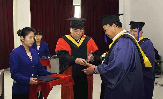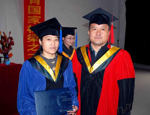 儀式在激情洋溢的樂曲中開始。首先大連海事大學(xué)信息科學(xué)技術(shù)學(xué)院自動化系主任李暉宣讀首批工程碩士名單。獲得大連海事大學(xué)首批工程碩士名單如下:北方航海公司王洪余、邱琦、范世偉、李忠曄、王德利、宿利楠、李海洋、王曉紅、李娜、儀表公司李鋼、海天科技公司黃帥。每一位畢業(yè)生聽到自己的名字時,都沉浸在金榜題名的幸福之中。集團團委書記黃亮專門為畢業(yè)生們發(fā)來賀信,并希望集團青年員工以他們?yōu)榘駱?,不斷加強學(xué)習(xí),努力提高專業(yè)技能水平,增強責(zé)任感和使命感,為給予員工創(chuàng)造良好學(xué)習(xí)和工作環(huán)境的航星集團做出更大貢獻。緊接著,11名碩士畢業(yè)生身著學(xué)士服、頭戴學(xué)士帽,在歡快的樂曲聲中,精神抖擻地走上主席臺。大連海事大學(xué)信息科學(xué)技術(shù)學(xué)院副院長曹德信、集團黨委書記、董事長劉義為畢業(yè)生撥流蘇,進行學(xué)位授予。當(dāng)工程碩士們從領(lǐng)導(dǎo)手中鄭重地接過學(xué)位證書的瞬間,激動與喜悅之情溢于言表,他們向領(lǐng)導(dǎo)們深深鞠躬致謝。曹德信副院長發(fā)表了熱情洋溢的講話。他首先祝賀11名工程碩士順利畢業(yè),并為他們?nèi)〉玫某煽兏械津湴粒M麄冊诠ぷ鲘徫簧夏軌蚴冀K堅持學(xué)習(xí)、堅韌不拔、愛崗敬業(yè)、腳踏實地地工作,為航星集團的發(fā)展貢獻自己的力量。同時,曹院長祝愿畢業(yè)生們前程什錦,歡迎?;啬感?纯?。